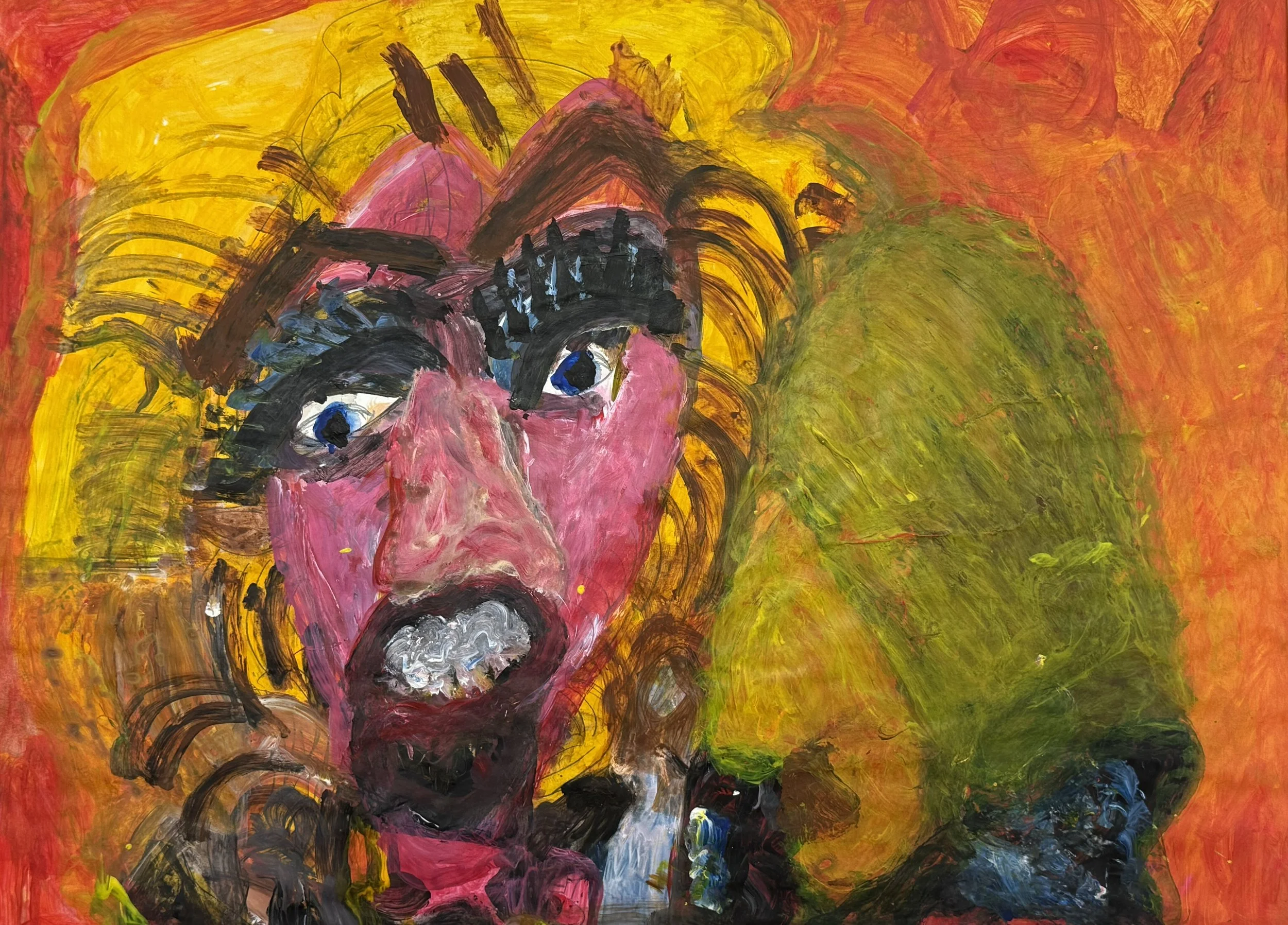 Janice Essick’s paintings are boundless and expressive, intimate and compelling. Drawn from personal history as well as invention, her paintings of women, men, horses, and cityscapes compose an extensive iconography that spans her 19-year career at Interact. She is an ardent recorder of people, both in groups and alone, showing dramatic faces and personal style. Working intuitively and incessantly, Essick adds layers of medium until a piece looks right. In the studio, she surrounds herself with reference books, markers, and paints, a spread of images and media to choose from.